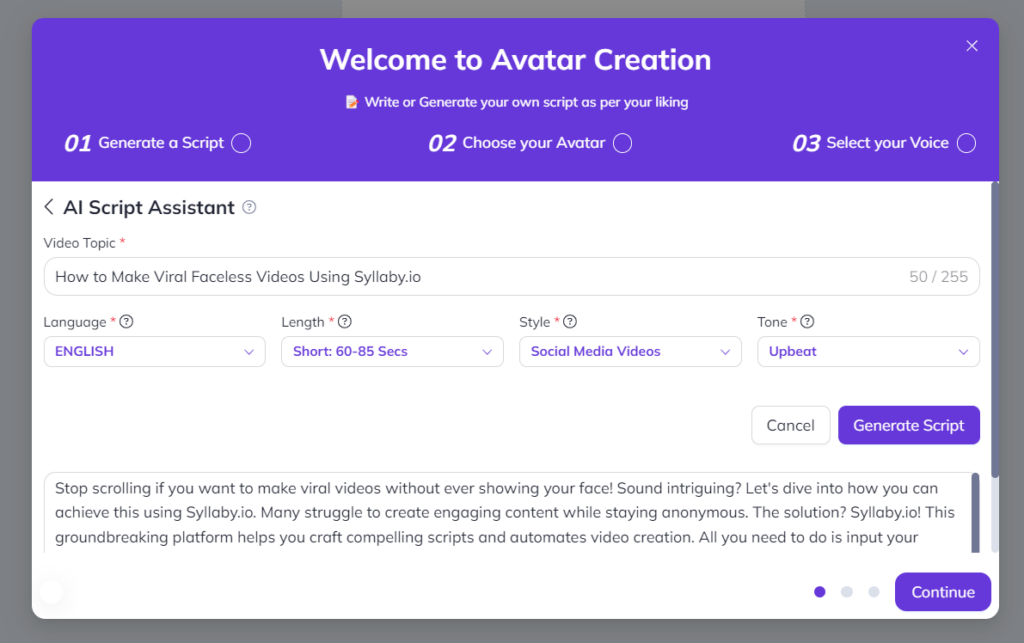 Once you’ve identified a trending topic, the next step is to create a script that captivates your audience. Syllaby’s AI-powered script generator allows you to craft engaging narratives that align with your chosen topic. The platform provides various styles and tones, enabling you to customize your content to fit your brand’s voice.